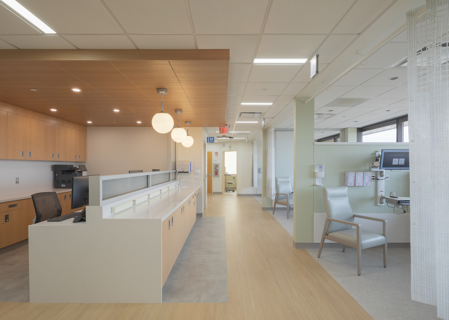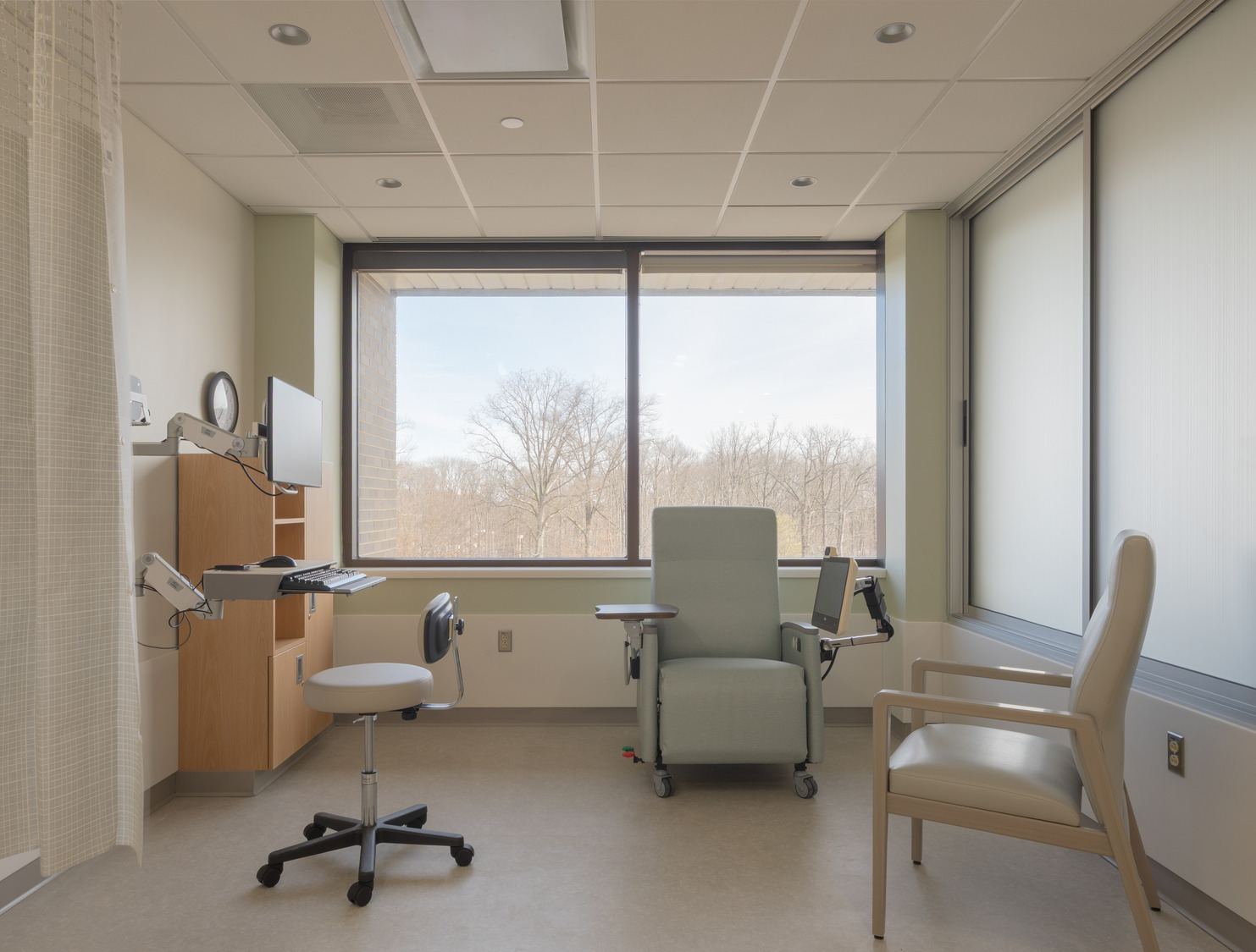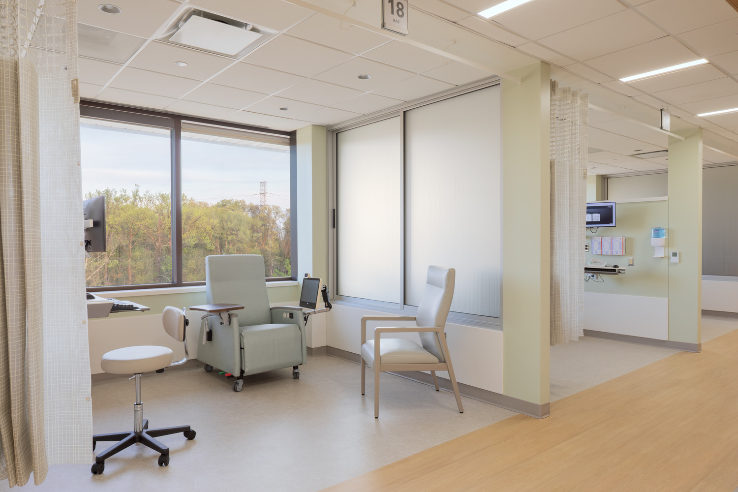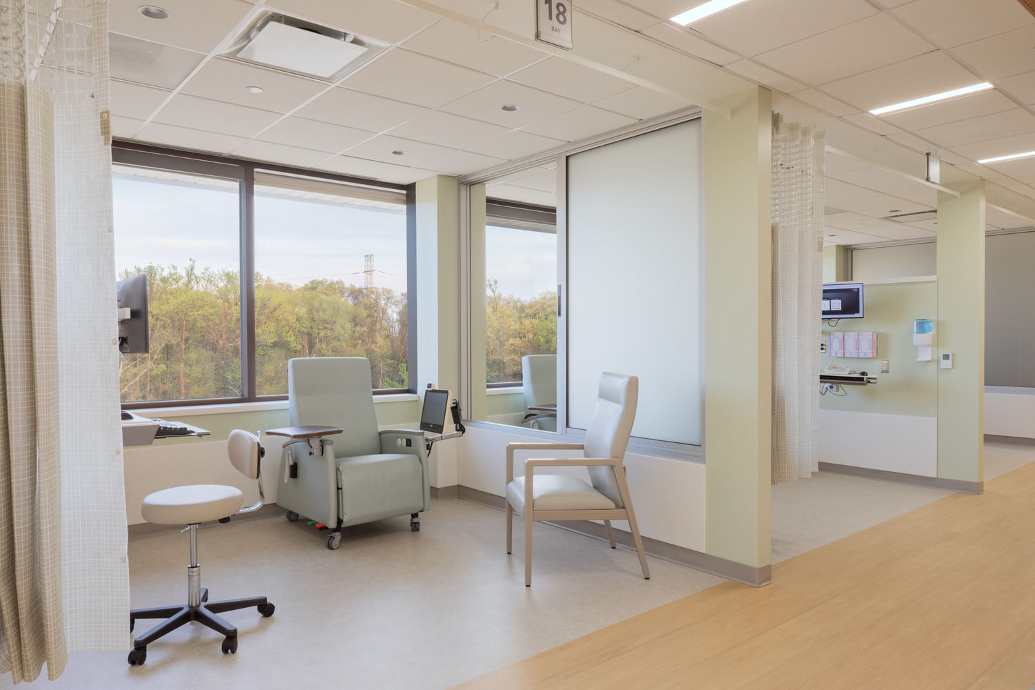 JFK University Medical Center has expanded across the street into 80 James Street, with a complete interior fit-out across three floors and the main lobby of the existing building. DIG’s team helped the medical center realize its vision for centralized oncology services. Within the new oncology space, DIG designed the interior to prioritize patient comfort and well-being, featuring private infusion bays with natural light and sustainable materials. All finish materials adhered to Hackensack Meridian Health’s strict environmentally conscious finish standards; part of the Health Hospital Initiatives national campaign, which provides hospitals with tools and resources to focus sustainability efforts in the healthcare field.